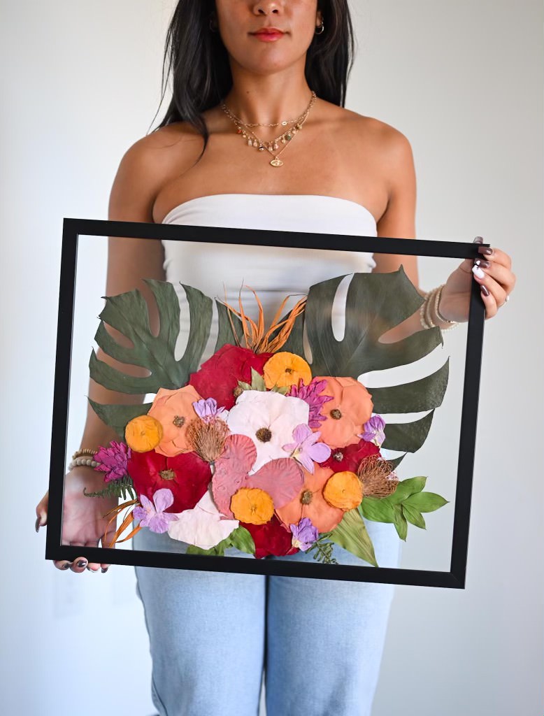 Our floral preservation service transforms your cherished flowers into timeless keepsakes. Whether it’s your wedding bouquet, memorial blooms, or any sentimental flowers close to your heart, we treat each one with the utmost care to preserve its beauty and the emotions it holds. Our unique techniques enhance the colors and vibrancy of your flowers, creating a custom piece that allows you to relive your special moments for years to come.