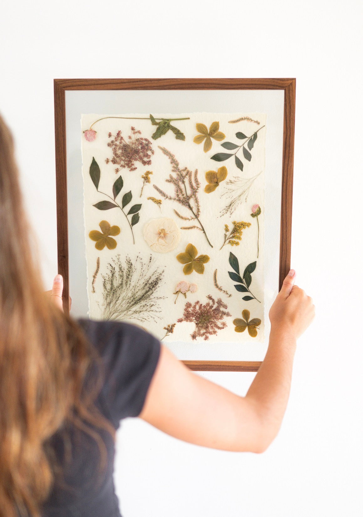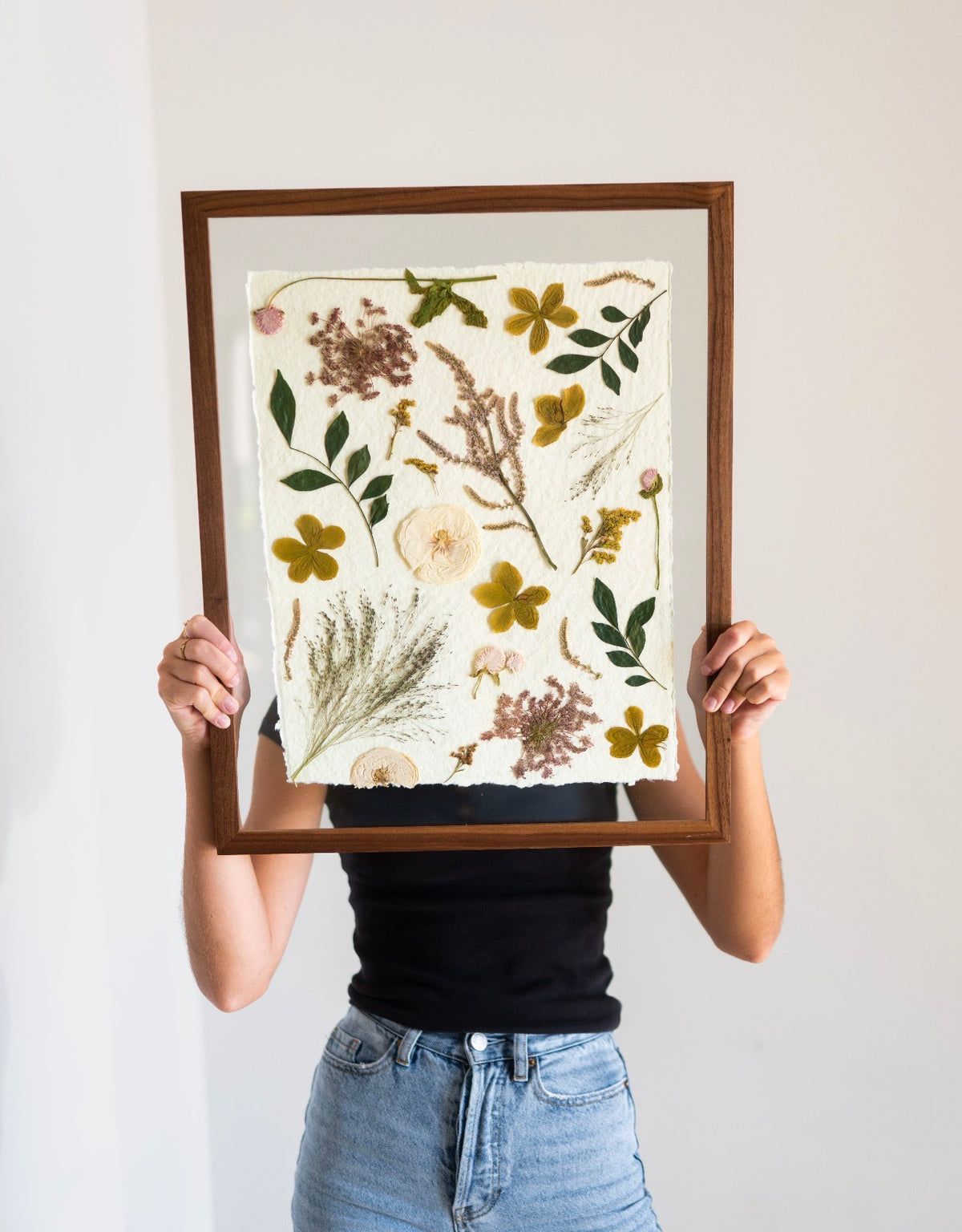 Every botanical is individually pressed and carefully placed, allowing the natural shapes and movement of each stem to remain intact. No paint, no prints — just real preserved florals captured in a modern composition.